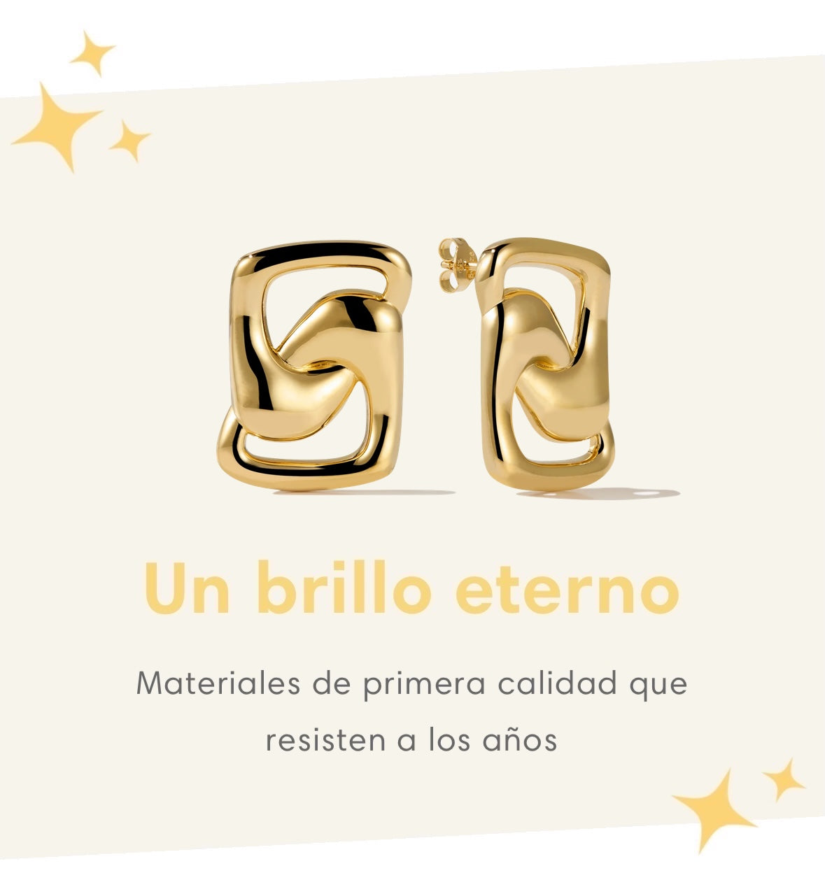 Los pendientes están elaborados con inoxidable y bañadooro de 18k, garantizando calidad, durabilidad y un brillo atemporal.