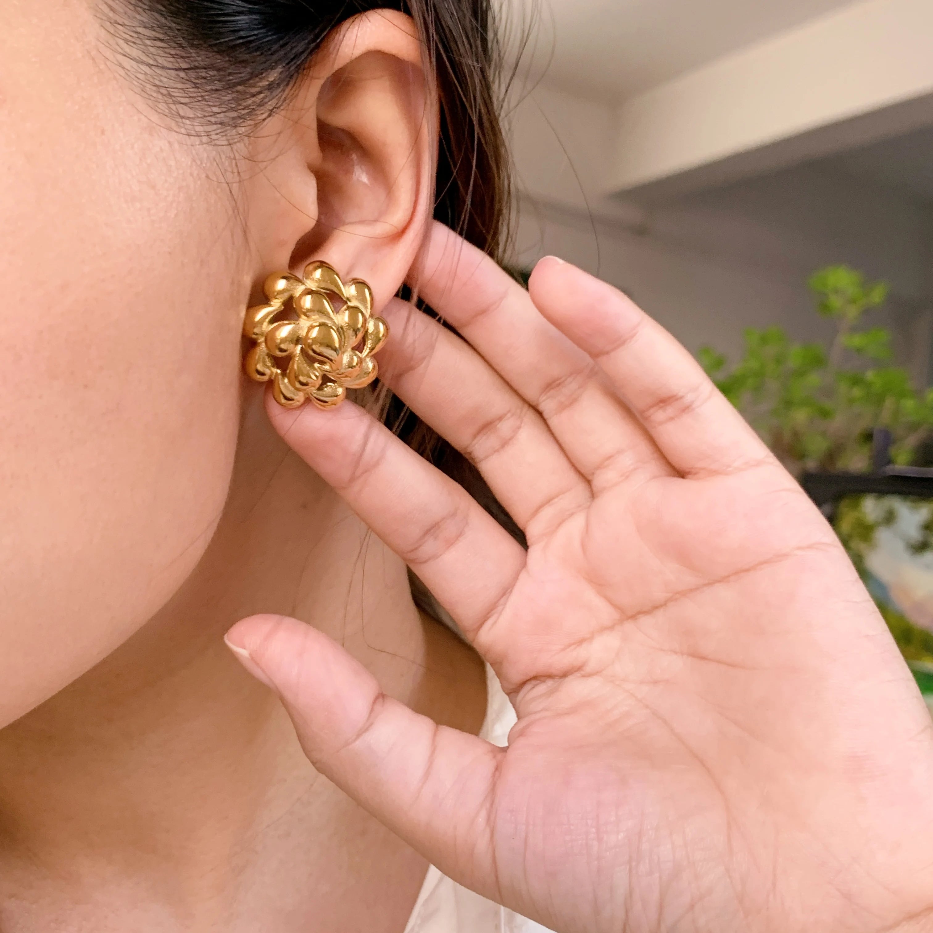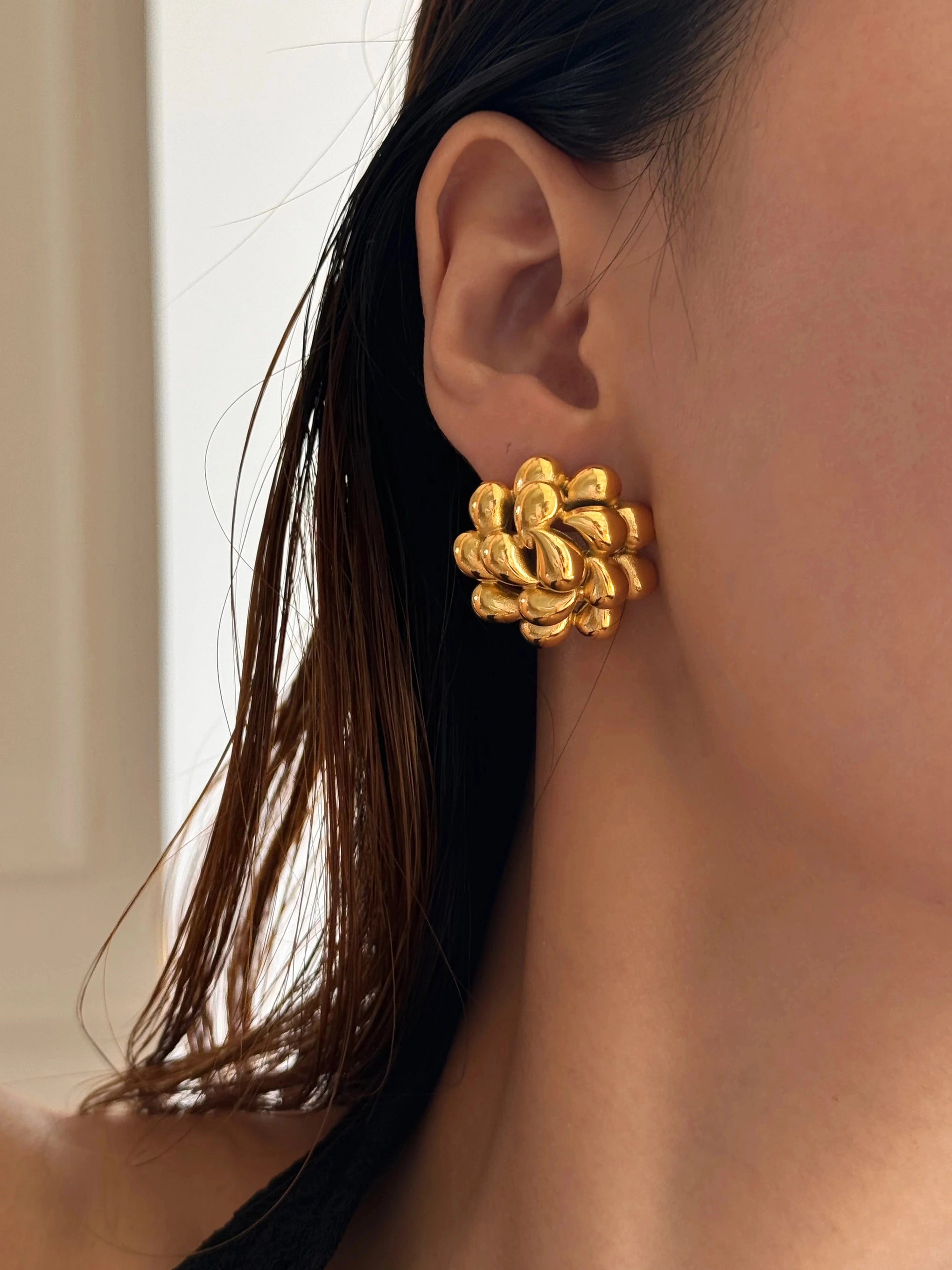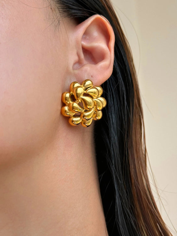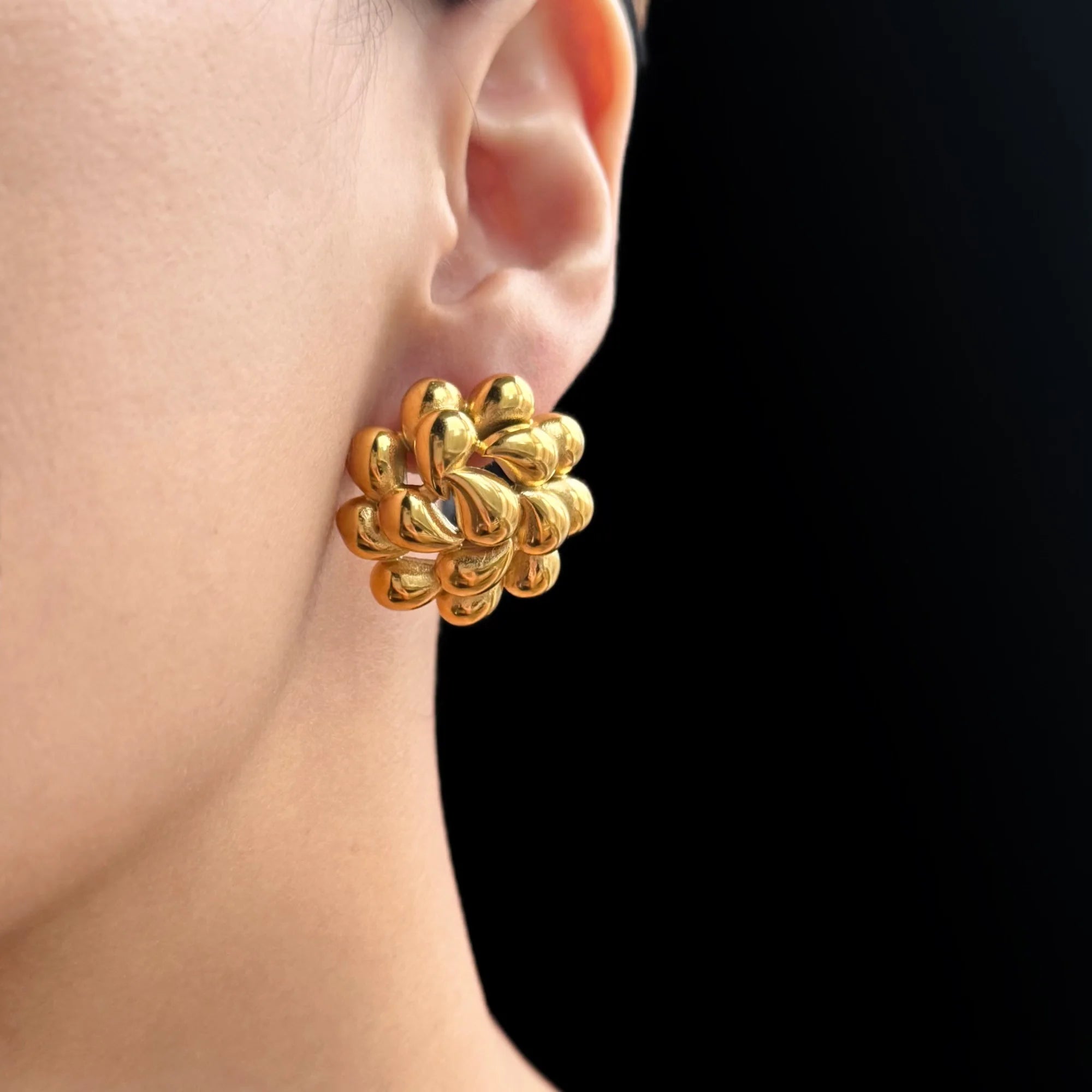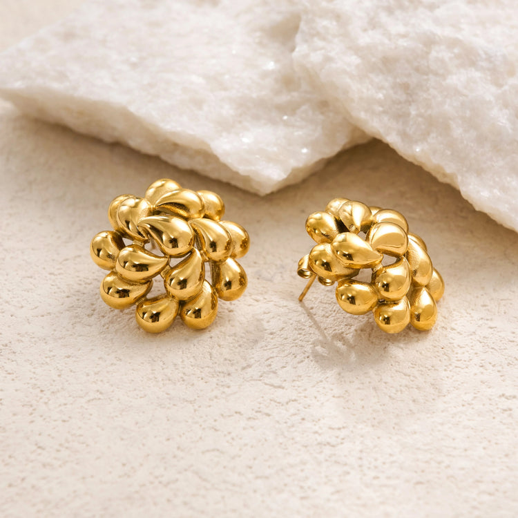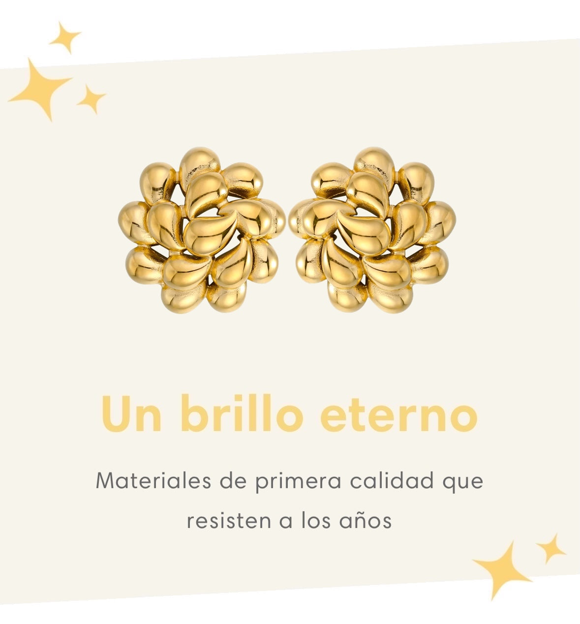 Los pendientes están elaborados con inoxidable bañadooro de 18k, garantizando calidad, durabilidad y un brillo atemporal.